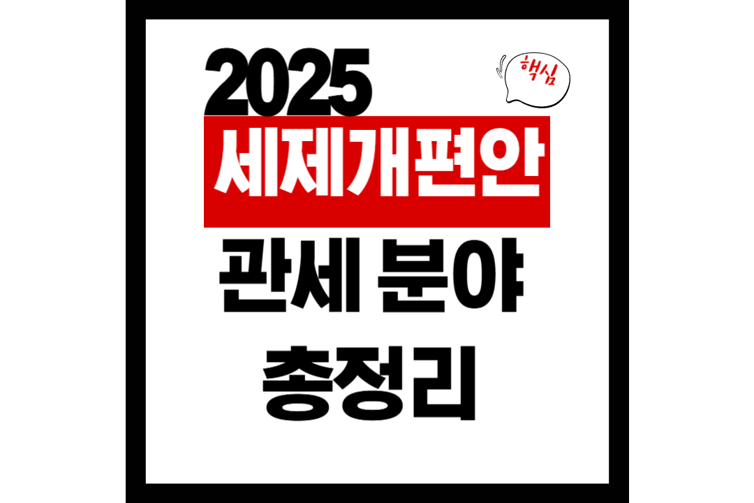 안녕하세요. 오늘은 2025년 세제개편안 중 '관세' 관련 주요 개정사항을 한눈에 정리해 드리겠습니다.