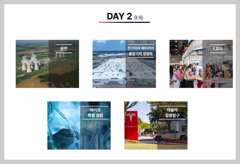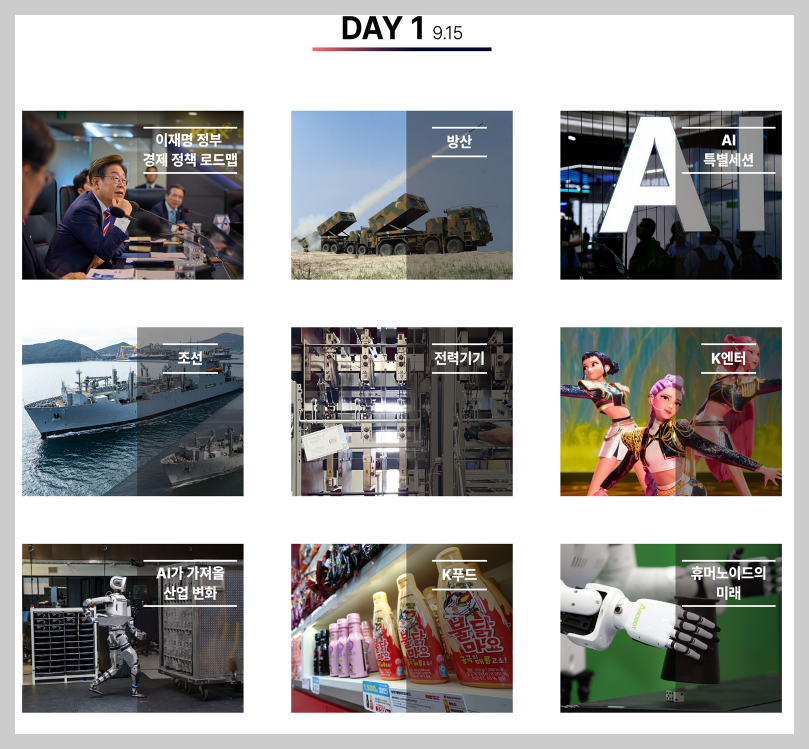 방위산업 · 조선, 인공지능(AI), 원전, K콘텐츠, 전기차, 뷰티, 전력기기, 바이오 등의 유망 산업의 핵심 기업들이 대거 참여한다고 해요.