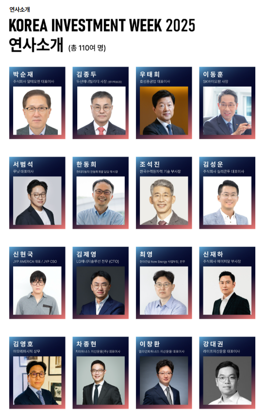 특히 김종두 두산에너빌리티 사장, 우태희 효성중공업 대표이사 등 국내 산업 혁신을 주도하는 최고경영자와 마켓 리더 110여 명이 연사들이 각자의 분야에서 인사이트를 공유할 예정이라고 합니다.