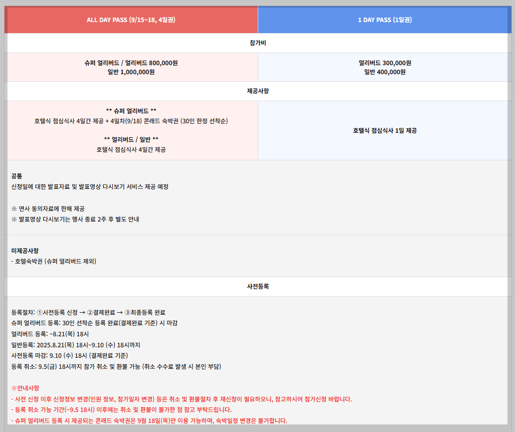 일시 : 2025년 9월 15일(월) ~ 18일(목), 4일간